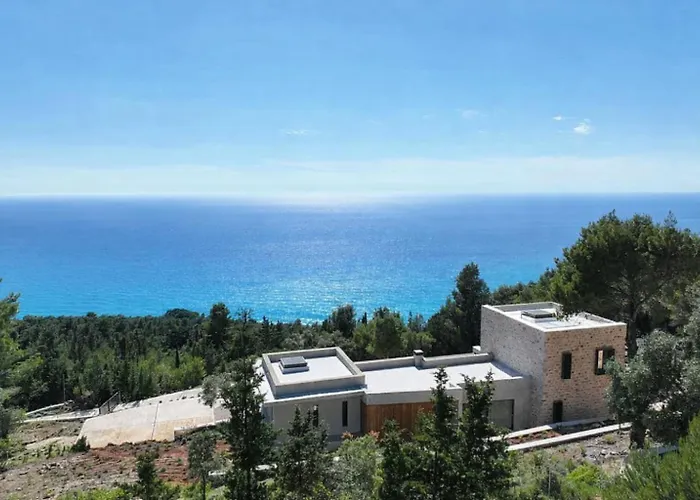 Villan med 5 badrum ligger också 3 km från Vasiliki hamn och 4 km från Porto Katsikis strand.